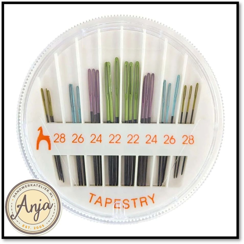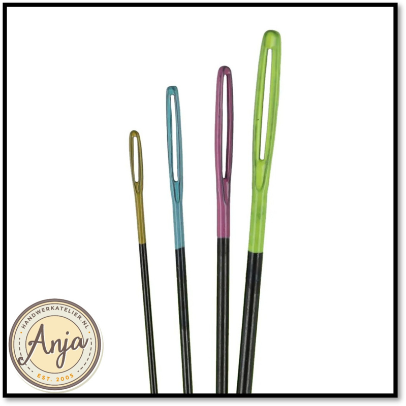 Deze naalden hebben een stompe punt en zijn ideaal voor borduren op canvas en grovere Aida-stof. Ze zijn ook perfect voor het in elkaar zetten van gebreide of gehaakte kledingstukken.
